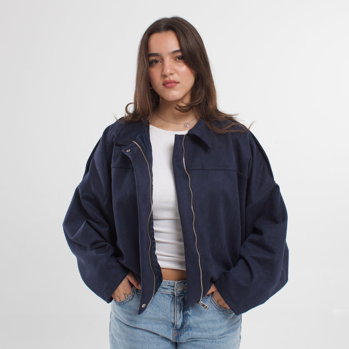 Designed with a structured collar, dropped shoulders, and a cinched hem for subtle volume, this jacket pairs seamlessly with both casual and elevated looks. Available in timeless shades — navy, chocolate brown, and olive — it’s a wardrobe staple that adapts to any occasion.