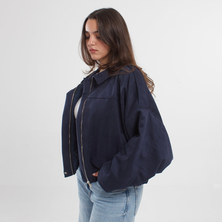 Make a bold statement with this bombshell Suede-Jacket, crafted for effortless style and modern versatility. Its relaxed, slouchy silhouette gives it an elevated streetwear edge, while the soft suede-effect finish adds a touch of refinement.
